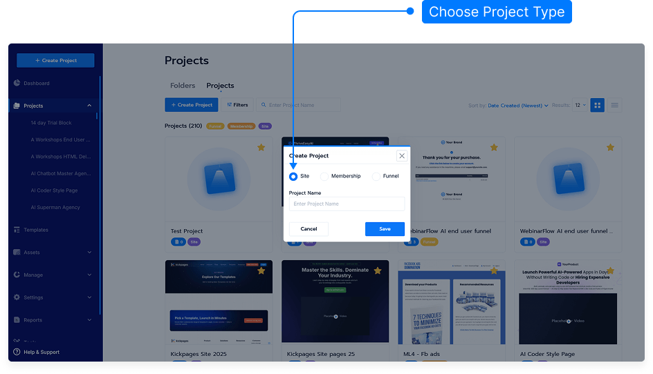 Creating a new project allows you to organize your pages and design work efficiently. Follow the simple steps below to create one.