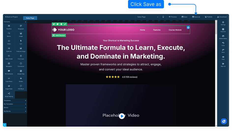 Once you’ve finished creating a layout you’d like to reuse, click Save As in the top right corner, then select Template.