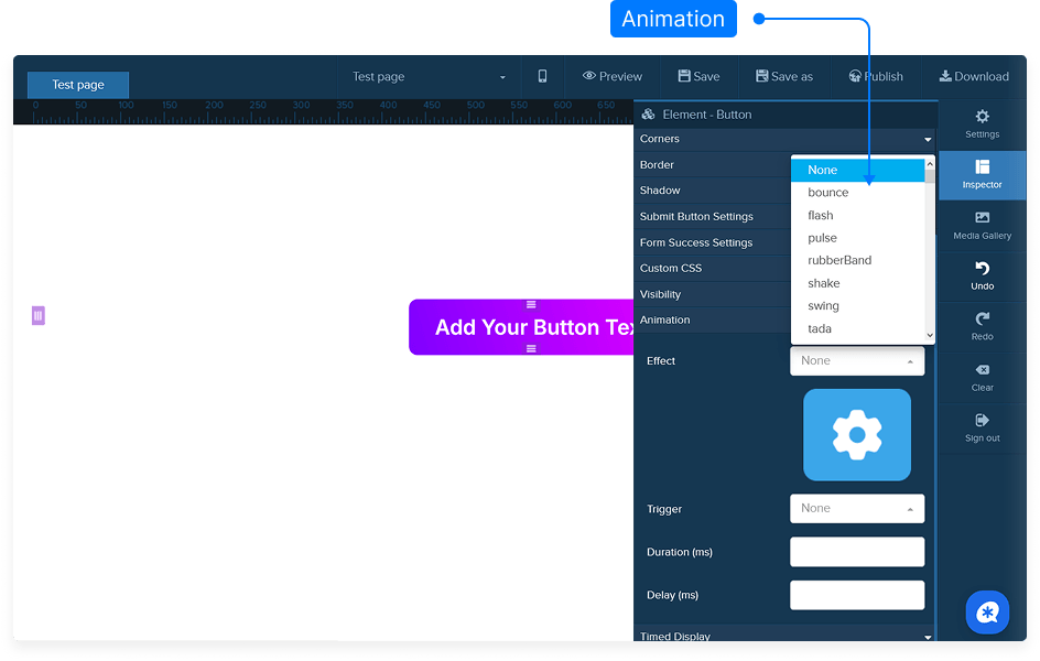 In this tutorial, you’ll learn how to add, customize, and use buttons effectively within your page builder. Buttons can be styled, linked, animated, and configured for multiple purposes such as navigation, triggering pop-ups, or submitting forms.