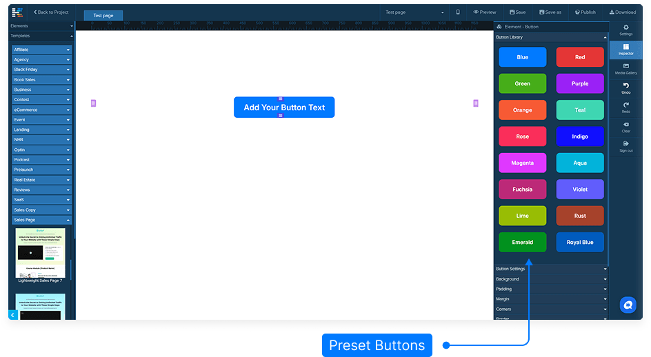 Use the Preset Buttons section to quickly change the button’s color scheme.