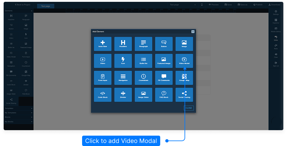 This tutorial will show you how to add and customize a modal video on your page. A modal video is a video that pops up on top of the page when triggered by a button or image.