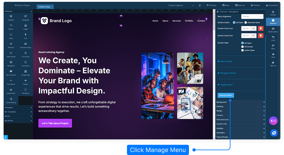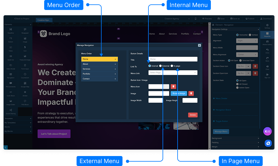 This tutorial will guide you through linking your navigation menu items to different pages within your project. You’ll learn how to connect internal pages, external URLs, and even sections within the same page.
