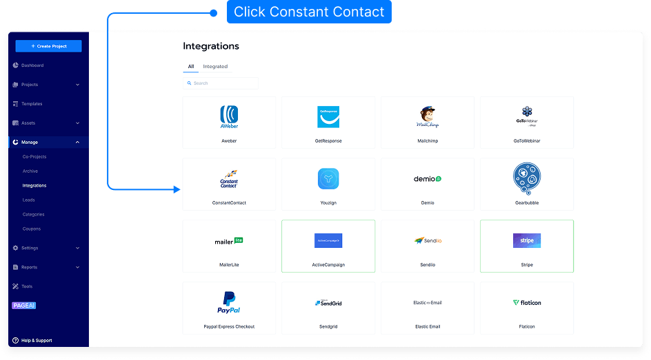 3. Select Integrations from the Menu